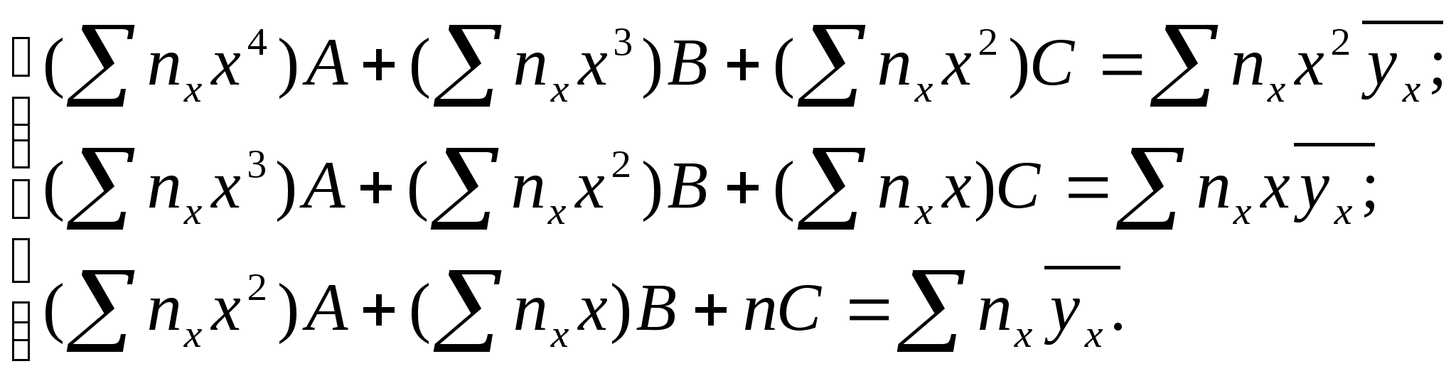 Неизвестные параметры A, B,C находят из системы уравнений: