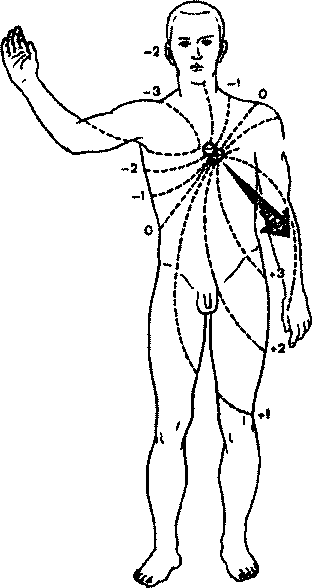 Разности потенциалов между вершинами равностороннего треугольника называют стандартными передними отведениями и обычно обозначают римскими цифрами I, II, Ш. Усиленные униполярные отведения позволяют измерять разности потенциалов между одной из вершин треугольника и средними значениями потенциалов на двух других вершинах. В случае отведений I, II, Ш изучается изменение вектора электрического поля сердца во фронтальной плоскости; в случае шести дополнительных отведении, называемых грудными, изучаются изменения вектора электрического поля сердца в поперечной плоскости.