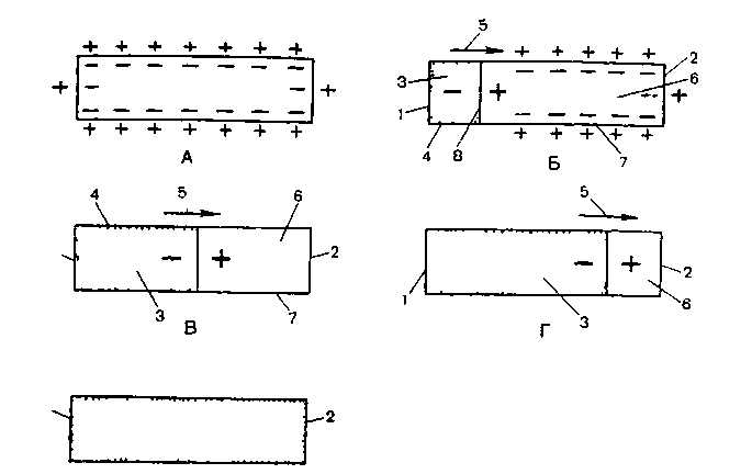 Клетка миокарда в покое (А) и во время деполяризации (Б).
