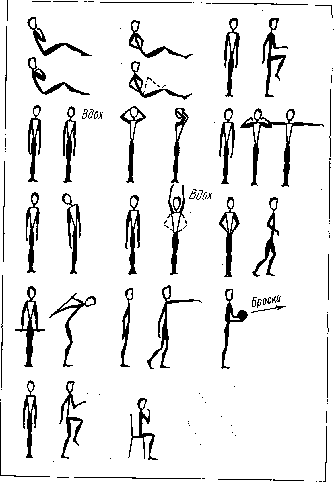 Рис. 11. Комплекс упражнений ЛГ для больных экссудативным плевритом (основной период)