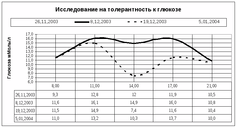 Если в ПТТГ гликемия натощак не превышает 140 мг%, через 2 часа после приема глюкозы выше 140 мг%, но не более 200 мг%, а в промежуточных точках не выше 200 мг%, тогда такое состояние называют нарушенной толерантностью к глюкозе(НТГ). Следует иметь в виду, что далеко не во всех случаях НТГ переходит в дальнейшем в сахарный диабет: толерантностью к глюкозе может восстановиться или остаться нарушенной на неопределенно долгое время.