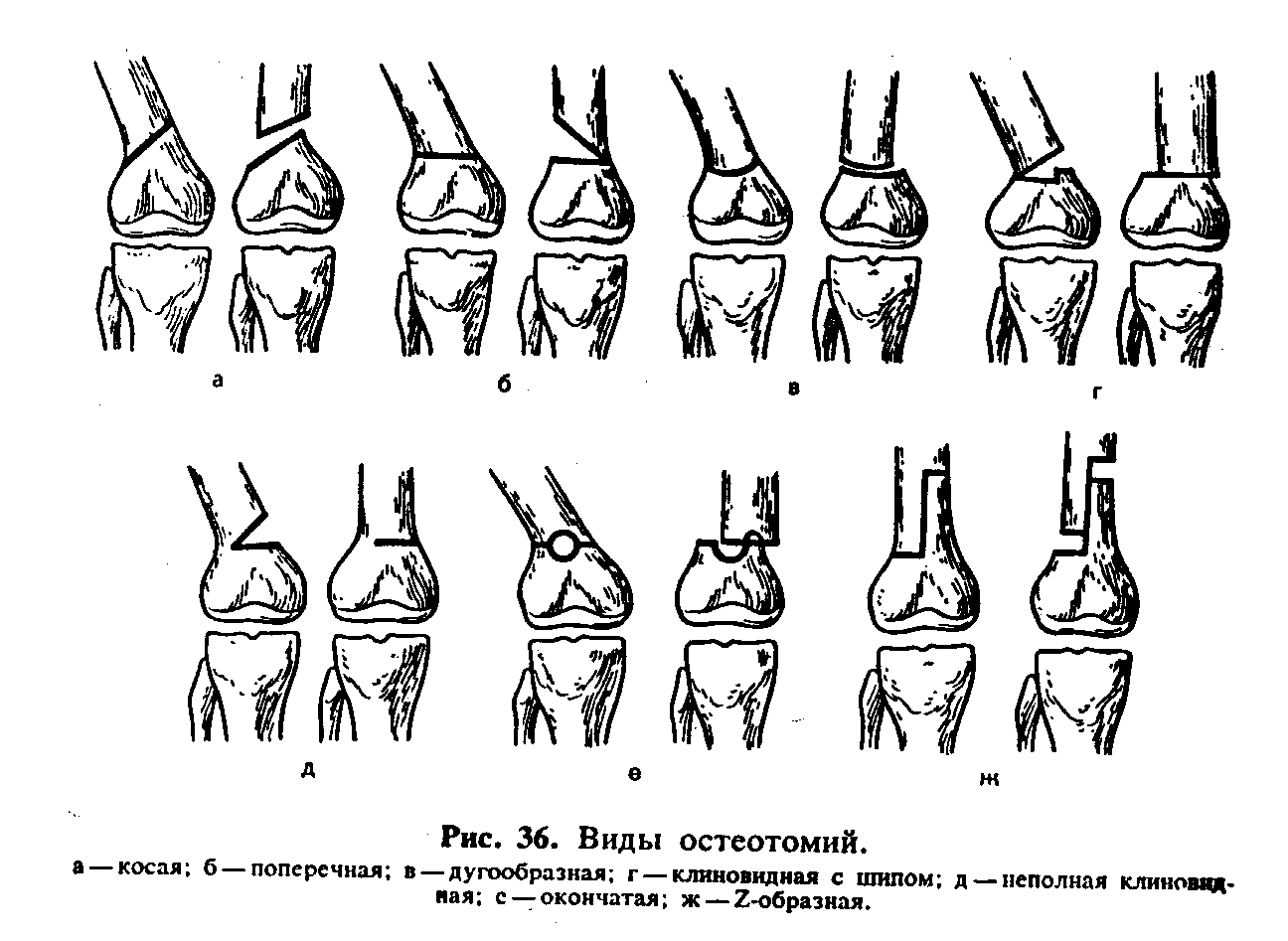 . Остеотомия—операция пересечения кости, обычно направлена на устранение деформаций и выравнивание конечности. Выполняется специальным инструментом—остеотомом (долото с равномерно скошенными поверхностями и сантиметровыми делениями на клинке).. Можно пользоваться обычными долотами соответствующей ширины и формы. Для
