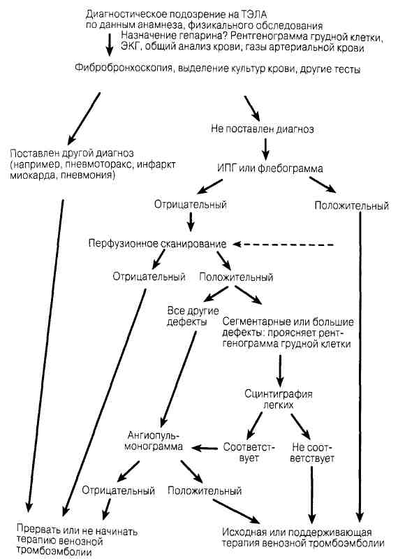 Рис. Алгоритм диагностики тромбоэмболии легочной артерии. Условные обозначения: ИПГ — импедансная плетизмография. (Воспроизведено из: MoserK. V.: НРШ-13).