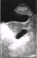 Не являются исключением случаи однокамерного варианта гидросальпингса, ошибочно расцениваемого, независимо от способа сканирования, как киста яичника. Необходимость дифференциальной диагностики с фолликулярной кистой возникает редко и только при наличии правильной овальной формы гидросальпингса. В 90%-95% случаев, при однокамерном варианте экссудативного сальпингита, конфигурация овального жидкостного образования - неправильная вследствие выраженного преобладания продольного размера патологического очага.