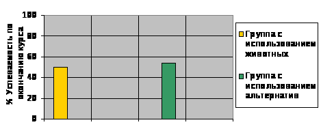 5. Замена опытов на животных альтернативными методами в итоге дает такие же или даже лучшие результаты в конце курса (см. диаграмму ниже) [30].