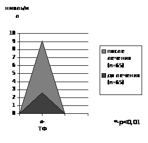 У больных избыточным весом (ИМТ>25кг/м2) по сравнению с больными с нормальным весом наблюдался более выраженное (p<0,01) увеличение содержания -ТФ при его равных исходных значениях.