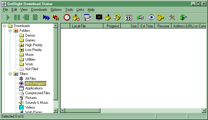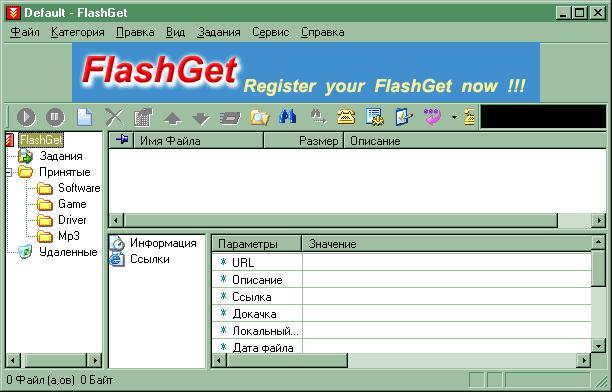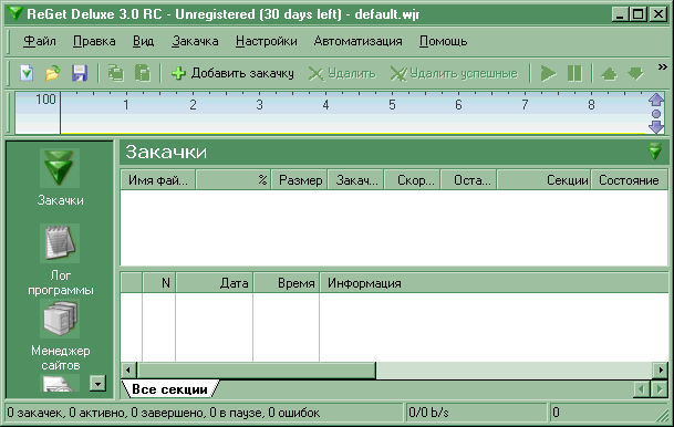 С помощью ReGet можно без проблем скачать содержимое целых серверов. В отличие от обычных броузеров и других менеджеров закачек, ReGetвсю информацию о закачке выводит в одном окне, сохраняя целостность пользовательского интерфейса.
