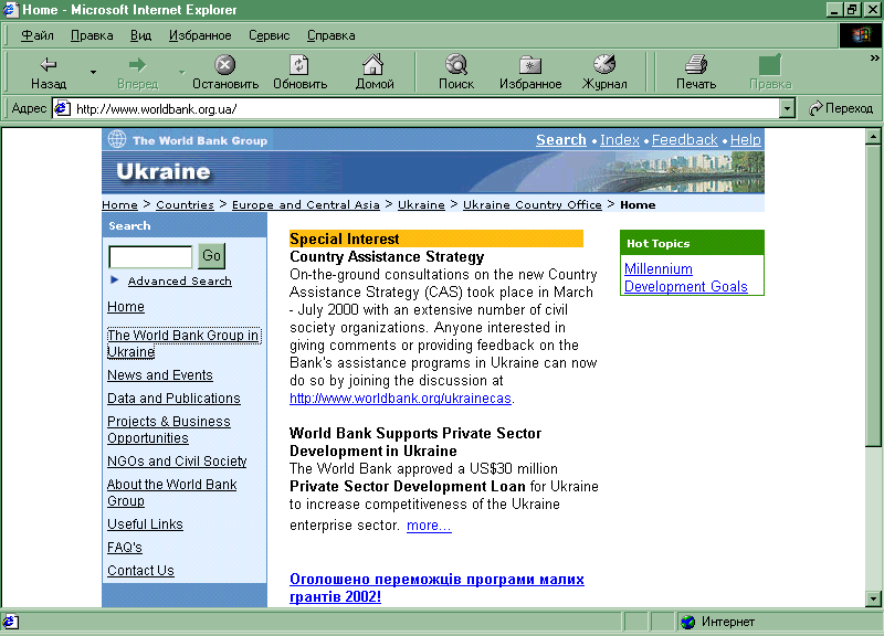Здесь мы можем прочитать о деятельности, принятии участия Украины в работе мирового банка.