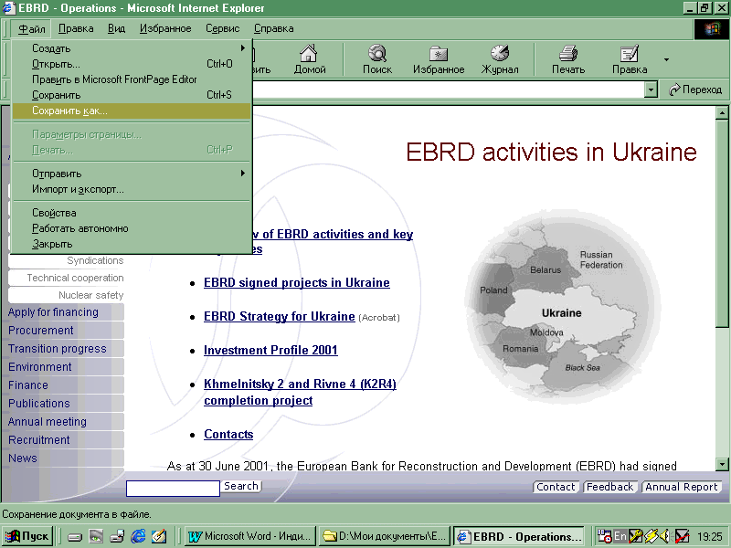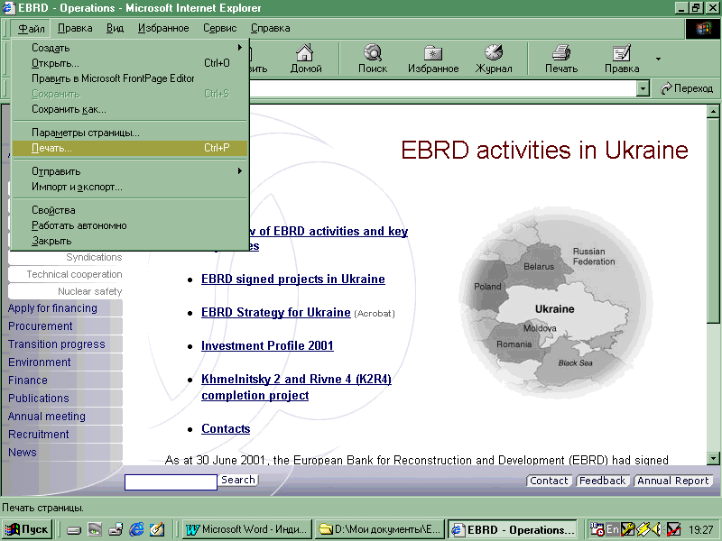 В своей индивидуальной работе я постаралась отразить, на мой взгляд, самые интересные сайты (из найденных мною), касающиеся банков Украины и Европейского банка реконструкции и развития.
