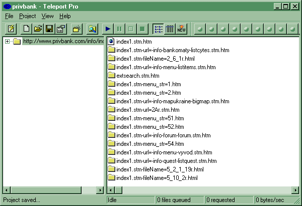 Программа позволяет копировать страницы со всей графикой, делать точные копии Web-сайтов, сохраняя оригинальную структуру каталогов. После копирования можно отключится от сети и просматривать информацию в off-line режиме. В пакет входит утилита Teleport Pro Scheduler, позволяющая запускать копирование по истечении заданного промежутка времени или периодически - ежечасно, ежедневно или ежемесячно.
