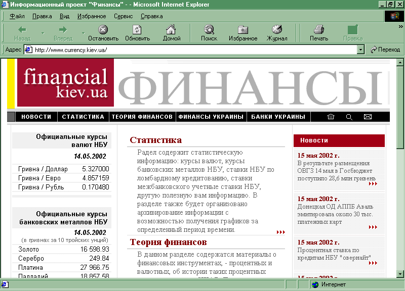 Мне кажется, что этот сайт менее интересен, чем предыдущий, хотя… здесь можно просмотреть курс валют, есть ссылка на банк Аваль, новости и события, периодику, таблицы, графики, справочники. Конечно, как и на всех других сайтах, есть карта этого сайта.