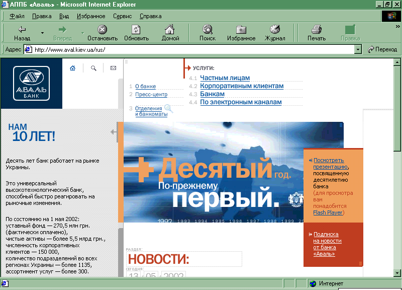 А ещё на главной станице можно нажать на ссылку и посмотреть презентацию, посвящённую десятилетию банка Аваль, а также подписаться на новости.