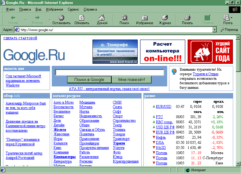 Выводится количество результатов для всех частичных поисков (совпадение 1 слова). Релевантность результатов для простого поиска на Rambler оставляет желать лучшего. Средства для сложного поиска на Rambler довольно многообразны - Rambler является лучшим кандидатом на звание "Русская Альтависта". Помимо стандартных логических операций над терминами, предлагаются такие средства как назначение весовых коэффициентов словам (для этого перед словом нужно поставить несколько плюсов - очень желательно присутствие слова - или минусов - слово нежелательно), поиск только в определенной части документа, поиск по URL.