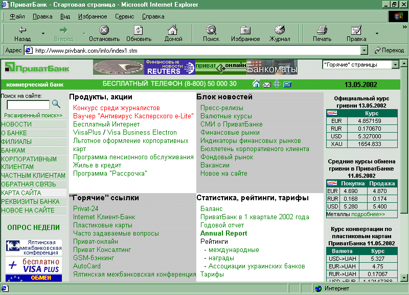 Я выбрала сайт Приватбанка, потому что это учреждение появилось на Украине 10 лет назад и завоевало доверие многих украинцев.