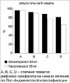 Rohss и соавт. (2002) сравнивали показатели суточной рН-метрии при приеме 40 мг эзомепразола и 40 мг омепразола в перекрестном исследовании у 130 больных с ГЭРБ. Как оказалось, эзомепразол обеспечивал более продолжительное поддержание рН выше 4,0. В первые сутки эзомепразол и омепразол обеспечивали такой уровень рН в течение соответственно 48,6% и 40,6% времени, на 5-е сутки - 68,4% и 62,0%. Превосходство эзомепразола над омепразолом являлось статистически значимым. Кроме того, при применении эзомепразола существенно меньшей была вариабельность индивидуальных ответов на проводимую терапию [19].