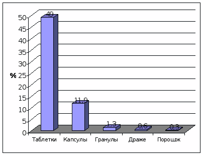 Рисунок 1 - Структура ассортимента твердых лекарственных форм