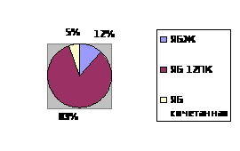 у взрослых страдающих ЯБ, ЯБДПК встречается в 64,8-78,6% , ЯБЖ в 15-27,4%, сочетанная в 6,2-7% случаев.