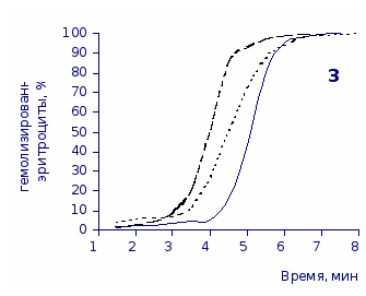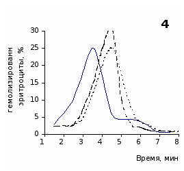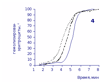 При уменьшении резистетности эритроцитов до минимума начинается процесс гемолиза. Гемолизом называется процесс разрушения мембран эритроцитов, сопровождающийся выходом гемоглобина в плазму крови. Плазма при этом окрашивается в красный цвет ("лаковая кровь"). Гемолиз может проходить in vivo и in vitro.