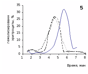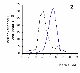 Если же оболочка клетки непроницаема для действующего агента, к процессу гемолиза добавляется еще один этап. Проникновение гемолитика в клетку предшествует повреждение оболочки. В результате этого мембрана эритроцитов утрачивает непроницаемость для молекул лизина, после чего процесс развивается по ранее описанному пути [21, 77].