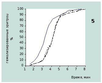 Фактор целостности мембраны определяется биохимическими процессами. При рассмотрении энзимов основного энергетического процесса в эритроците - гликолиза - в первую очередь, выделяют каталазу и глюкозо-6 фосфатдегидрогеназу. Защитная роль каталазы заключается в предотвращении окисления гемоглобина до метгемоглобина, а также предохранении гемоглабина от расщепления под действием перекиси водорода. Сходным эффектом обладает глутатионпероксидаза. Эритроциты, лишенные этих ферментов, становятся весьма чувствительными к действию радиации [56, 59, 94, 97]. Глюкоза-6-фосфатдегидрогеназа катализирует реакцию образования НАДФ(Н); последний в свою очередь способствует функционированию глутатионредуктазы, которая регулирует уровень восстановленного глутатиона. Глутатион необходим для нормального протекания реакций гликолиза. Система глутатина рассматривается как буферная, защищающая эритроциты от деструктивного действия окислителей. Нарушение синтеза глутатиона, увеличение его распада, а также нарушение систем регулирования его уровня приводит к гемолизу [39].