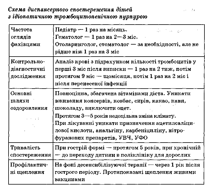 Поліклінічний етап реабілітації дітей з ідіопатичною тромбоцитопенічною пурпурою