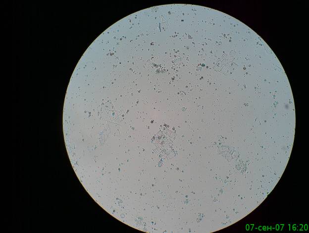 2. Наличие кристаллов холестерина, сахара, мочевой кислоты и др., включая дрожжевую и бактериальную инфекцию.