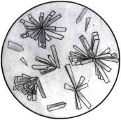 - уровень водно-солевого обмена - наличие кристаллов различных солей. Наличие кристаллов мочевой кислоты говорит об образования песка или камней в желчном пузыре. Наличие кристаллов ортофосфорной кислоты говорит об развитии остеопороза. Наличие кристаллов холестерина говорит об образовании целлюлита у женщин и атеросклероза у мужчин.
