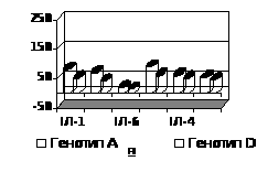 Досліджуючи синтез прозапальних та протизапальних цитокінів у 54 хворих на ХГВ залежно від генетичної варіабельності HBV (генотип А зустрічався у 51,9% (28 осіб), D – у 48,1% (26 осіб)) було встановлено, що як у періоді загострення, так і в періоді ремісії хвороби у пацієнтів з генотипом А рівні досліджуваних цитокінів були більш високі порівняно з такими ж у хворих з генотипом D (рис.4).