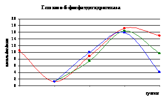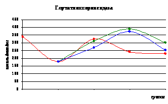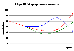 При дальнейшем приеме алкоголя выявлена активация адаптационно-приспособительных механизмов, направленных на защиту против повреждающего фактора (рис.5). Это проявилось, прежде всего, в том, что повышались активности ГП и Г-S-ТР, снижалось содержание GSH в печени и увеличивались активности Г-6-ФД и ГР.