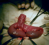 Рис. 1, 2. Дивертикул Меккеля во время операции.