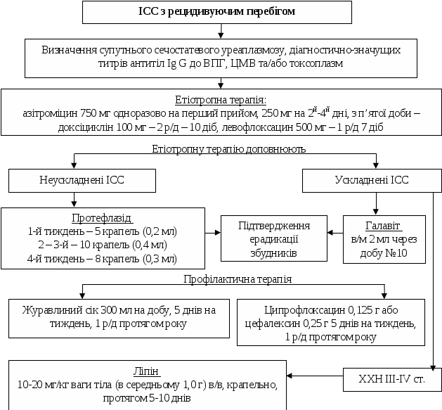 Доведено необхідність включення до етіотропного лікування хворих на ІСС з супутнім сечостатевим уреаплазмозом антибіотиків, які спрямовані на ерадикацію U. urealyticum, що дозволяє поліпшити ефективність лікування та уникнути рецидивів.