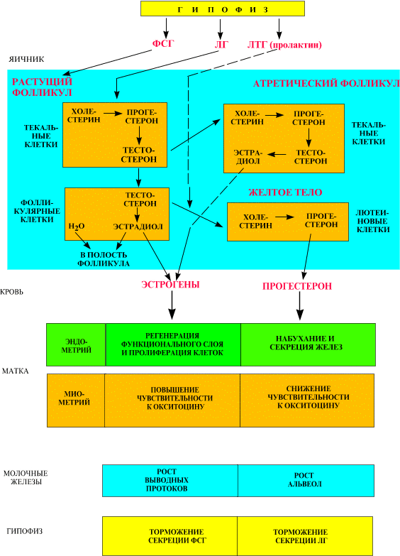 Кроме того, что яичники сами вырабатывают половые гормоны, на яичники влияют гормоны гипофиза.
