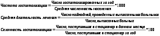 Госпитализированная заболеваемость. Учет лиц лечившихся в стационаре и вычисляется 1000 населения в виде общего и по отдельным нозологическим формам интенсивного коэффициента.