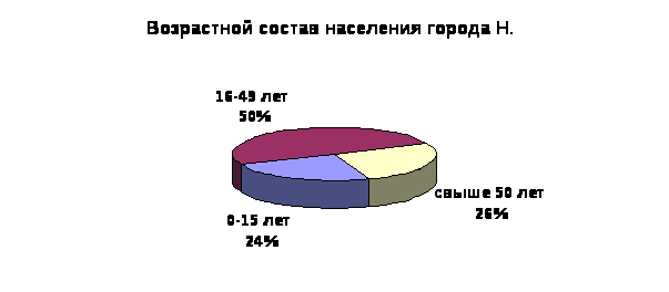 При изучении структуры населения выявлено, что в городе Н. стационарный тип структуры населения с тенденцией к регрессивному.