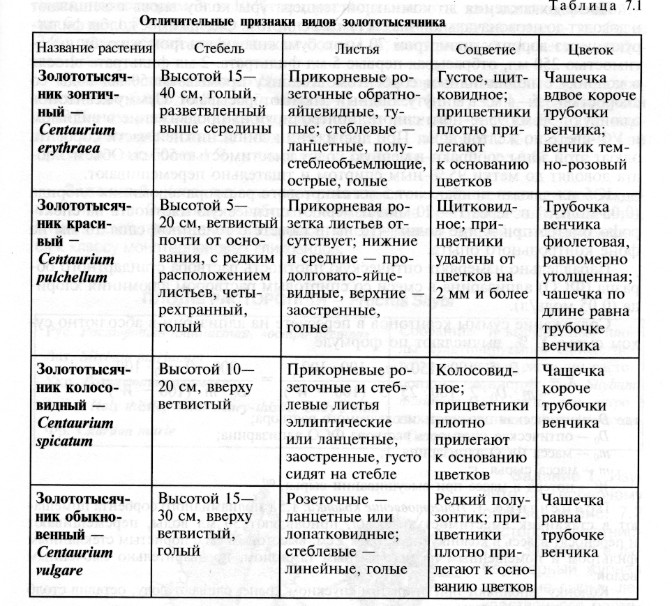 2.1 Краткая ботаническая характеристика рода и вида Золототысячника
