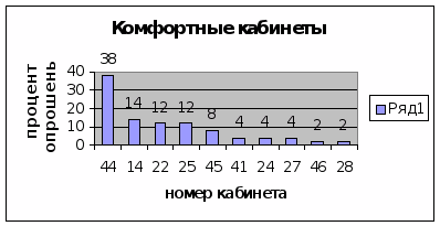 Получив эти данные, я решила провести тестирование среди учащихся на тему того, в каком кабинете они чувствуют себя наиболее комфортно. Им были заданы 2 вопроса: