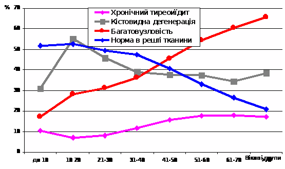 До лікувально-діагностичної тактики при вогнищевих утвореннях щитоподібної залози (ЩЗ) прикута увага багатьох дослідників [Alexander E.K., Hurwitz S., Heering J.P. et al., 2003; Graf H., 2004; Liwinska L., Kowalska A., 2005; Sarkar S.D., 2006]. Розроблено низку стандартів щодо ведення пацієнтів з вогнищевими утвореннями ЩЗ [AACE/AME Task Force on Thyroid Nodules, 2006; Cooper D.S., Doherty G.M., Haugen B.R. et al., 2006], існують вітчизняні рекомендації [Стандарти діагностики та лікування ендокринних захворювань, 2005; Комиссаренко И.В., Рыбаков С.И., Коваленко А.Е. и др, 2006; Власенко М.В., Паламарчук А.В., Прудиус П.Г. и др, 2003].