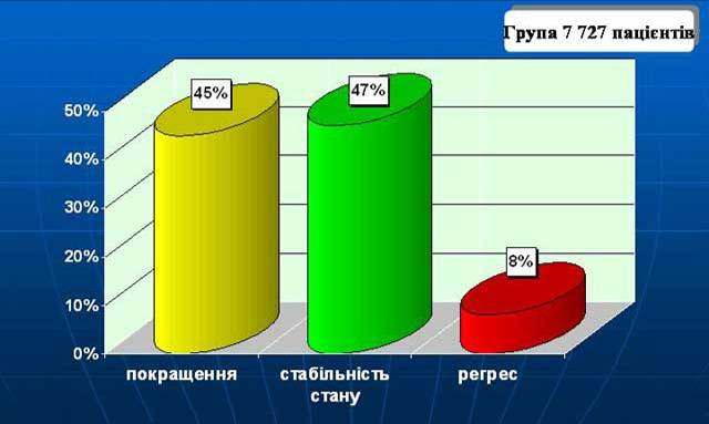 Через місяць було вироблено порівняння результатів лікування і виявлені наступні результати.