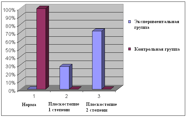 Сравнительные данные первичной диагностики плоскостопия детей контрольной и экспериментальной группы