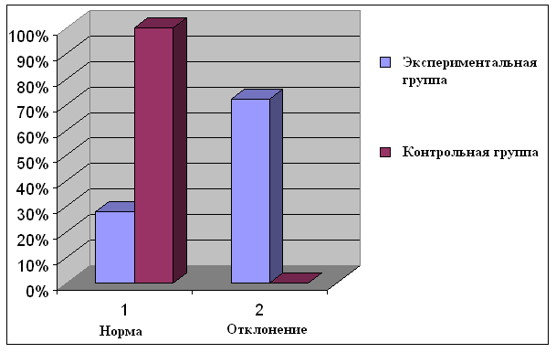 Сравнительные данные первичной диагностики тестовых карт детей контрольной и экспериментальной группы