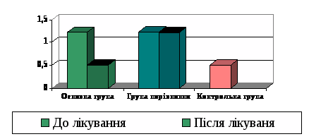 При оцінці кровотоку в судинах яєчників після проведеного лікування було виявлено у пацієнток основної групи зниження МШК в 1,3 рази (р<0,05) та ІР в 1,2 рази (р<0,05) і підвищення ПІ в 1,4 рази (р<0,05), що може свідчити про нормалізацію кровообігу в яєчниках. Більш того, ці показники вірогідно не відрізнялися від таких у контрольній групі та відповідали фазам менструального циклу, чого не спостерігалося в групі порівняння.