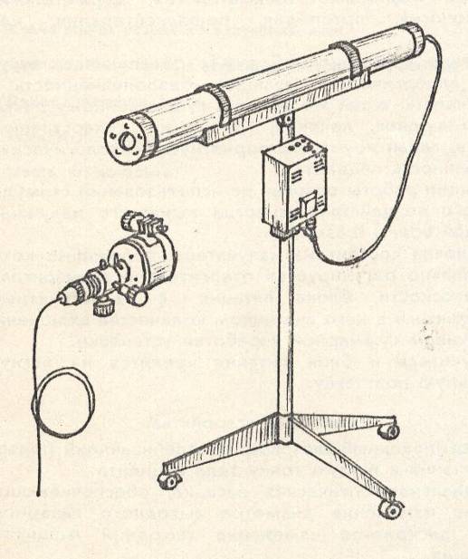 Излучатель и блок питания крепятся на легкую мобильную подставку.