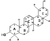 К группе -амирина относятся сапонины почечного чая; -амирина – сапонины солодок, каштана конского, сенеги, синюхи голубой, аралии маньчжурской.Пентациклические чаще всего имеют гидроксигруппу в положениях С>3>, С>16>, С>21>, С>22>, С>24>; карбоксильную группу у С>28, >С>29 >(глицирризиновая кислота), карбонильную – у С>3>, С>11> и др. группы. Гидроксигруппы могут быть этерифицированы органическими кислотами. Двойная связь чаще всего находится в положении С>12>-С>13>.