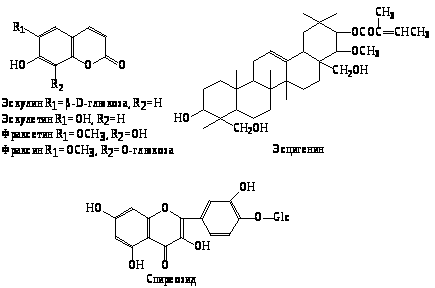Хроматография в тонком слое. Водное или спиртовое извлечение хроматографируют на силикагеле или алюминия оксиде в подходящей системе растворителей. Для нейтральных сапонинов чаще всего используют н-бутанол – уксусная кислота – вода, для кислых – н-бутанол – водный аммиак в различных соотношениях. Систему подбирают экспериментально. На хроматограммах сапонины обнароуживают, проявляя различными кислотными реагентами: конц. Кислота серная, уксусный ангидрид, 25% раствор фосфорномолибденовой кислоты, треххлористая сурьма и др., часто в сочетании с кобальта хлоридом, ванилином, пара-диметиламинобензальдегидом и др.