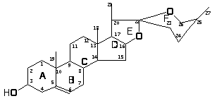 Агликоны (сапогенины) всегда имеют гидроксигруппу у С>3>, иногда у С>1>, С>2>, С>5>, С>12>. У многих в положении С>5>-С>6> имеется двоная связь.