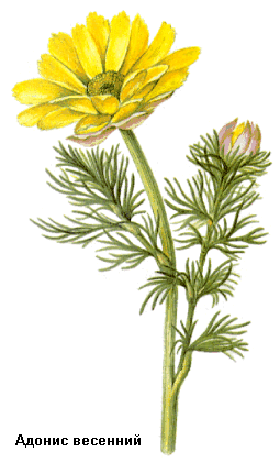 Применение. Адонис применяют при сравнительно легких формах хронической недостаточности кровообращения. Показаниями к применению адониса служат невроз сердца, вегетодистония, инфекционные болезни, протекающие с симптомами ослабления сердечной деятельности, болезни почек с признаками сердечно-сосудистой недостаточности.