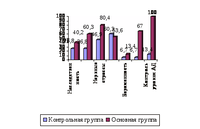 Большое значение в качестве фактора, предрасполагающего к развитию гипертонической болезни, имеет наследственность. Получены многочисленные данные о большой частоте гипертонической болезни среди родственников лиц с артериальной гипертензией. Важная роль наследственности в развитии гипертонической болезни была исследована Ю.В. Постновым, показавшего, что генетически обусловленное нарушение функции клеточных мембран с образованием «застойных» надпороговых концентраций свободного кальция в цитоплазме является той платформой, на которой реализуется действие других факторов риска [15, c. 378].