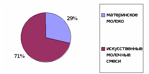 большинство детей находилось на искусственном вскармливании – 71% и лишь 29% малышей вскармливалось материнским молоком;