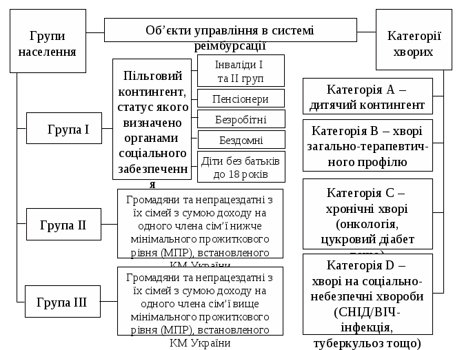 Світова практика свідчить, про те, що практично у кожній країні діють відповідні соціально-економічні методи управління, які враховують національні особливості, економічні можливості та визначеність пільгових категорій. Формування пільгових категорій знаходить своє відображення в соціальній сфері та охороні здоров'я майже всіх країн. Незадовільний стан лікарського забезпечення пільгових категорій населення в Україні пояснюється відсутністю соціального та обов'язкового медичного страхування, недосконалістю системи компенсації вартості ЛЗ і механізмів регулювання цін на ліки. Першочерговими завданнями у вирішенні проблеми є: упорядкування переліку та обліку пільгових категорій населення; формування формулярної системи забезпечення ЛЗ, особливо у разі лікування основних груп захворювань; впровадження соціального та обов'язкового медичного страхування з метою компенсації вартості лікування тяжких захворювань; розробка та впровадження ефективних механізмів реімбурсації вартості ЛЗ.