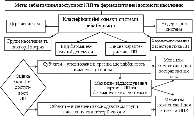 провести методологічне обґрунтування сучасних підходів щодо організації систем реімбурсації вартості ЛЗ в міжнародній та вітчизняній практиці;